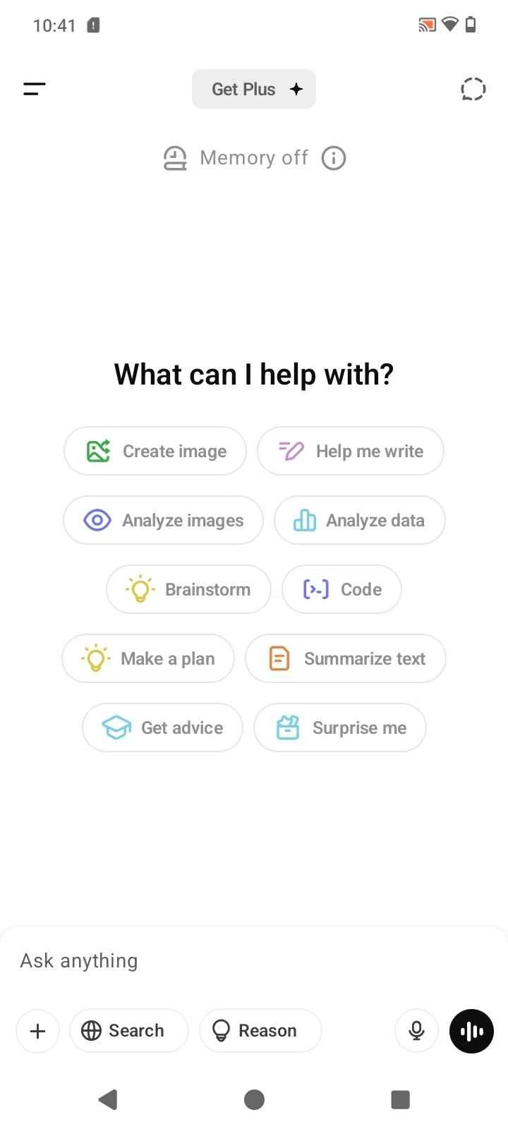 You can download and install ChatGPT from the official website, Google Play Store, or by simply clicking the “Download” button given on the page. Launch the app by clicking the icon that appears on your home screen, and complete the login process using your Google account, or create a new account. You are prompted to the main screen with a text box in the center of the screen. Here you have three ways to input your queries;
