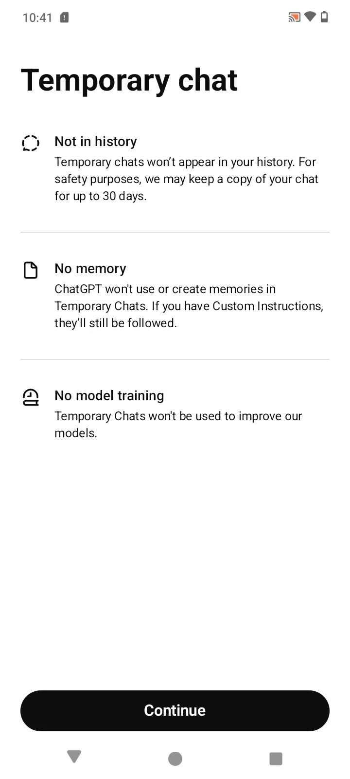 When you navigate to the main screen, you will find it simple and intuitive, and you also have the option to make changes according to your requirements. You need only to click the Settings menu and set your chat mode, temperature, or maximum tokens. One thing is important: the app requires a strong and stable network connection to offer quick and real-time assistance.